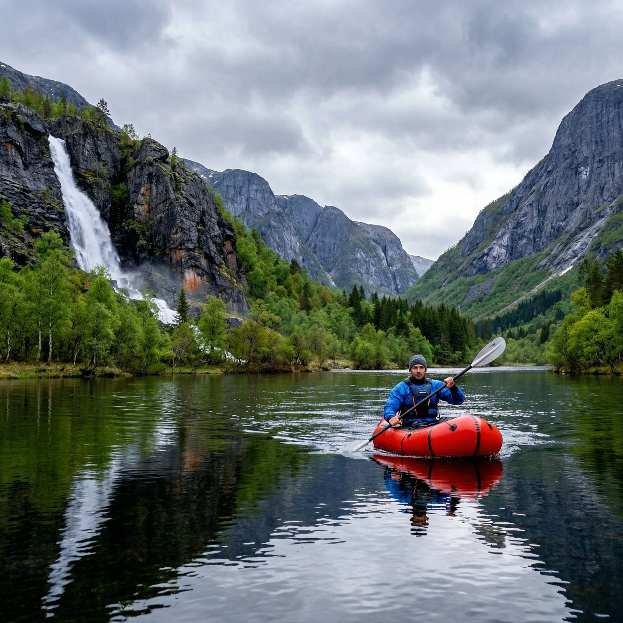 Explore the river at your own pace with our canoe and packraft rentals. We take you and the equipment upriver by boat, usually to Mollisfossen, giving you a beautiful starting point for a calm journey downstream.